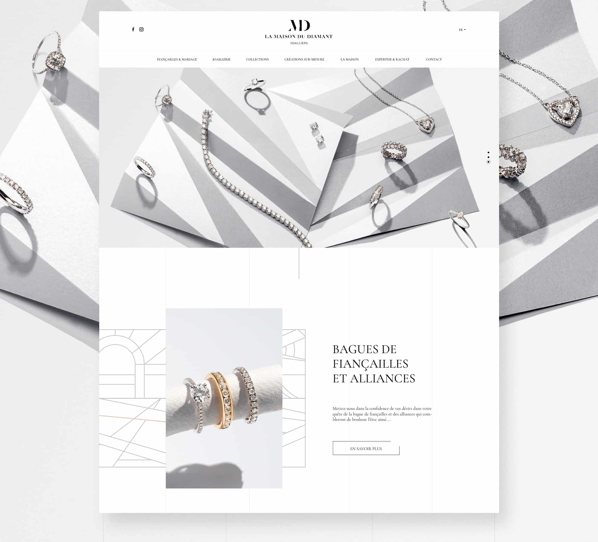 Comment digitaliser un geste aussi personnel que celui du joaillier ? Pour la Maison du Diamant, nous avons conçu plus qu’un site : un atelier digital. Une plateforme immersive où l’expérience débute avant même le rendez-vous. Nous avons mis en scène la matière, éduqué le regard sur la pureté d’un diamant et créé des parcours fluides vers la création sur-mesure. Le design est à l’image des pièces : une épure radicale qui met en lumière l’essentiel. Le luxe, ici, est dans la clarté.